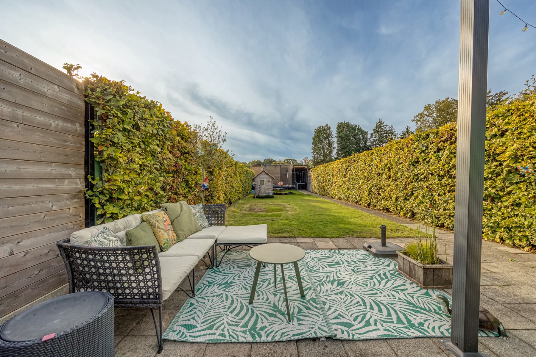 Veranda (16,5 m²) met dubbele openslaande deur naar het terras (56m²) en de tuin.